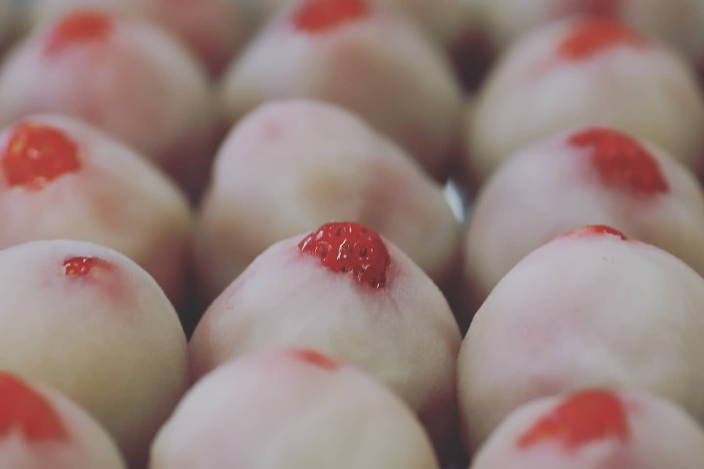 また、春は苺の美味しい時期でもあります。これからの季節に向けて活動が始まり、生き生きとした色鮮やかなお菓子が春の華やかさを彩ります。赤や桃色、黄緑色など、目にも鮮やかな色合いが特徴です。